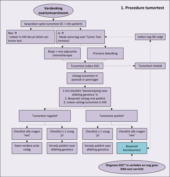 - Is er op basis van de checklist wel reden voor verwijzing? Verwijs dan de patiënt naar de afdeling genetica en stuur de checklist + de uitslag van de tumortest mee.